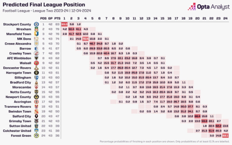 According to a 2023 study by Football Statistics UK, teams leading the division two league table at the mid-season mark have a 72 percent chance of finishing in the promotion spots (SOURCE: Football Statistics UK 2023 Report). This statistical insight underscores the importance of consistent performance early on.